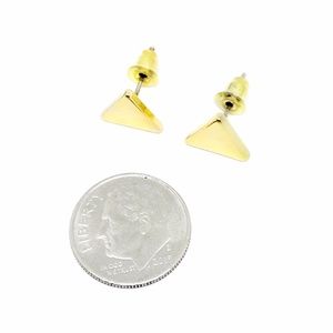 Lovely!! Pair of triangle earring studs in gold tone metal. 3/8" wide. 1mm thick. Standard posts for pierced ears. Total weight 1.6 grams.