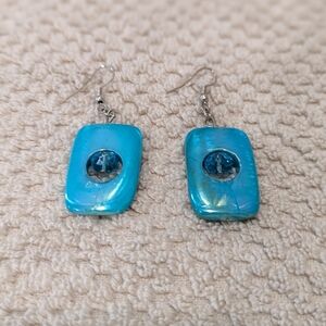 Earrings Turquoise Aqua Blue Bead Drop Silver Tone French Wire Pierced NWOT