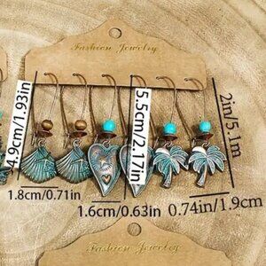 3pr Turquoise Earrings Dangle Gypsy Boho Hippie Native Southwest Palm Tree Shell Heart