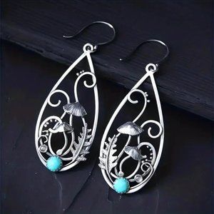 NEW Faux Turquoise Mushroom Tear Drop Earrings Inlaid Hippie