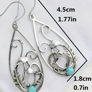 Earrings Turquoise Mushroom 3D Tear Drop Spiral Boho Alice Wonderland Unique NEW