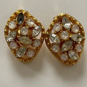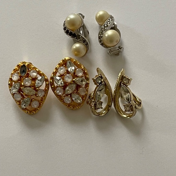 Earrings Vintage Jomaz Berger Coro Signed 3 Pairs Pearls Rhinestones