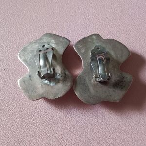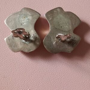 These substantial clip-on earrings are comfortable to wear and perfect for those without pierced ears, or anyone looking for a bold and stylish accessory. Each earring is stamped "MEXICO 925," guaranteeing its sterling silver authenticity. A truly unique find for collectors of vintage Mexican silver jewelry or lovers of distinctive, sculptural pieces.