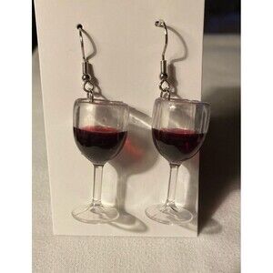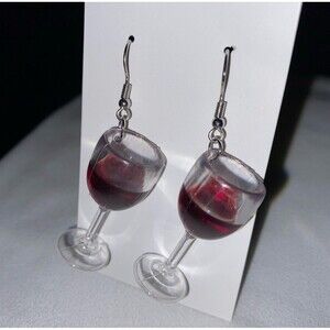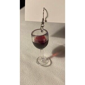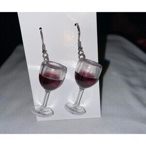 Earrings Wine Glass w/ Red Wine Dangle Lightweight Winery Party Drink Whimsical