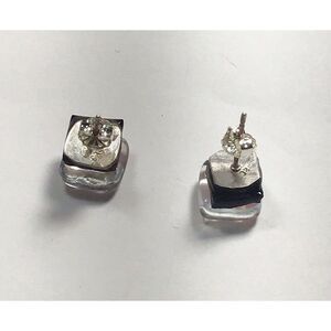 Little squares of gold colored dichroic glass earrings. These little bits of glass are hand crafted in Bonaire in the Caribbean, then carried back to my home. The glass is layered colors with clear glass on top for depth. Sterling Silver posts have a notch at the end to secure the butterfly clip. Stamped 92.5. Hand crafted in my studio in Florida. Made in the USA. 1.4" squares.