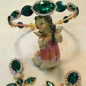 Handmade,Bohemia crystal,glass,faux pearls,brass,unique.