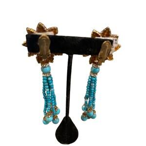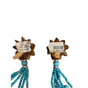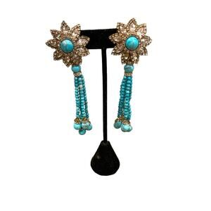 Earrings prego Turquoise beads & crystals vintage - new with tags clip 4”