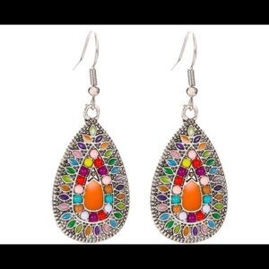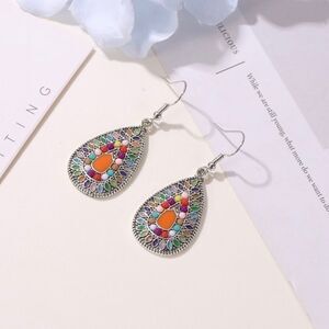 Earrings Drop Oil format BOHO style Colorful Zinc