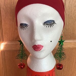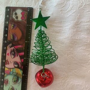 Earrings Exaggerated Christmas Tree Ornament Pierced Earrings Green Red