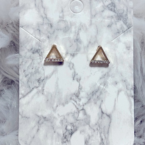 Small triangle studs that are open in center, cz stones on bottom. Nickel free and brand new