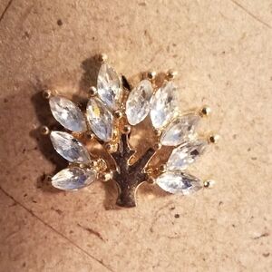 Earrings--Tree of Life in White Crystal Gems, Gold Tone