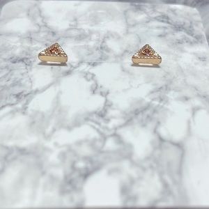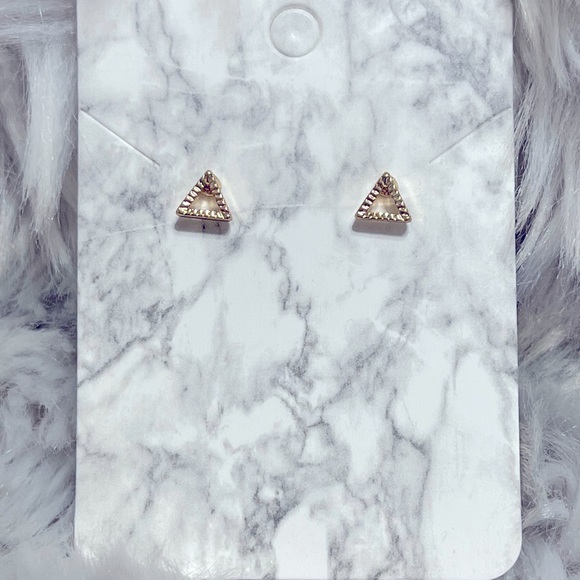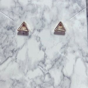 Small triangle earrings, lightly carved design, open in center, nickel free and brand new never worn