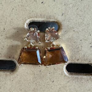 Earrings womens Brown crystal gold plated drop New