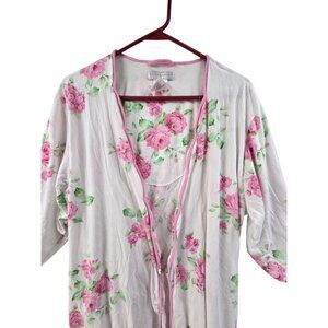 Earth Angels Women's Robe Long Sleeve Knee Length Floral Pink Size XL