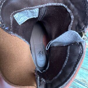 Earth Ankle Boot Womens 11M Brown Leather Zip Block Heel Casual Burnished Toe.