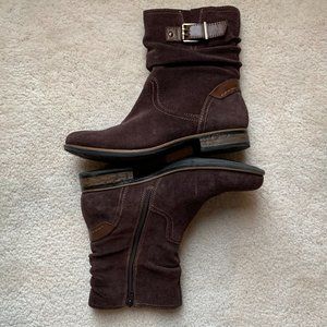 These boots are a nice option for spring and fall weather. Side zipper, soft textile lining and removable insole. Reinforced arch support. Moto inspired style.