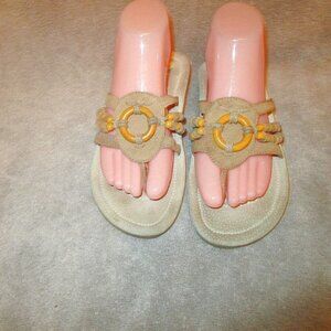 Earth BEADED Logan LEATHER Gelron Size 7.5 SANDALS Flip THONG Comfort CUSHION