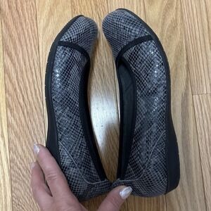 Earth Ballet Flats Womens 8.5M Black Alder Varden Snakeskin Slip On Flat Casual
