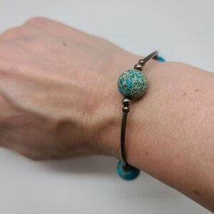 "Earth" Bead Bangle Bracelet. Not actually planet Earth beads exactly but referring to it as that because they look like it.