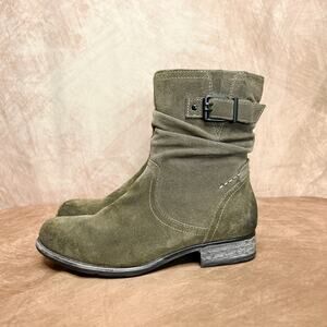 Earth Beaufort Wide Slouch Ankle Boots Olive Green Suede Leather Women's 7D Boho