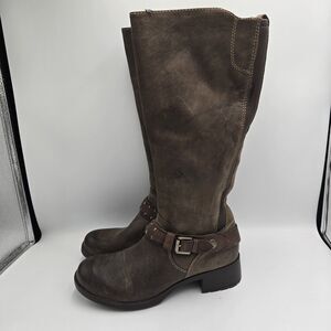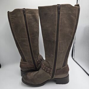 Earth Big Sky Tall Riding Leather Boots Women Size 8.5B Charcoal Brown Fur Lined