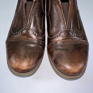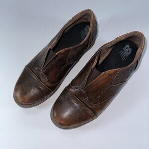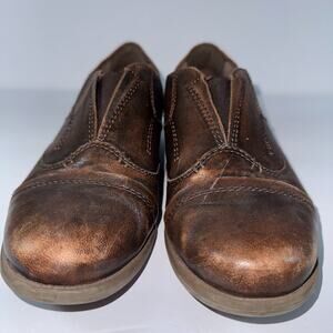 Earth Blythe Shoes Womens 7.5W Wide Brown Leather Comfort Cap Toe Oxford Slip On