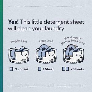🧿EASY TO USE: Start by removing a sheet from the compact packaging, place the sheet in the washing machine (drum or dispenser), and start your preferred laundry cycle; NO mess, NO measuring, NO wasted detergent, and NO goo