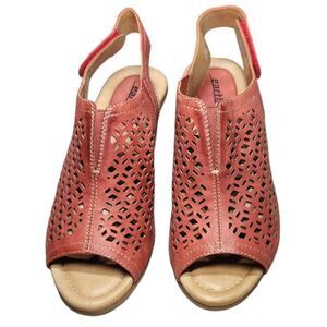 Earth Cascade Leather Red Rust Strap Wedges Heels Sandals Slingback Cutout