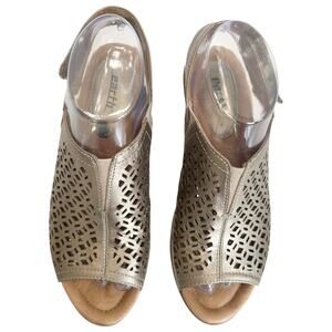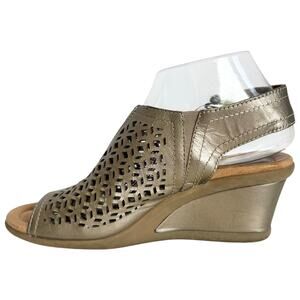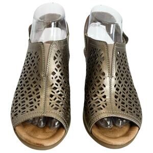 Earth Cascade Wedge Sandals Womens Sz 7.5 Slingback Leather Comfort Platinum