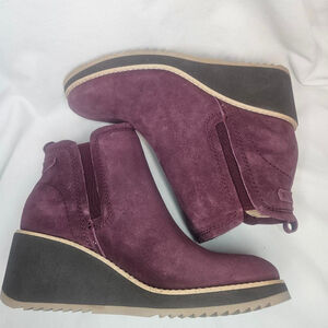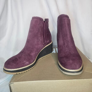 #WedgeBooties #SuedeBoots #BurgundyBoots #AnkleBooties