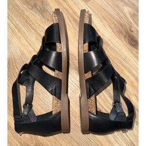Earth Dale Flat Sandal Black Leather - size 8 - T4