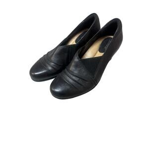 Earth Daytriper Black Leather Loafer Heels - Size 6.5