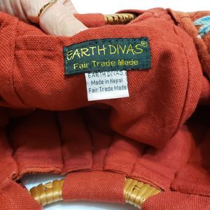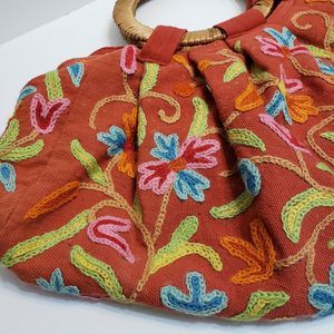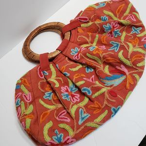 Earth Divas Embroidered Wicker Handle Boho Purse