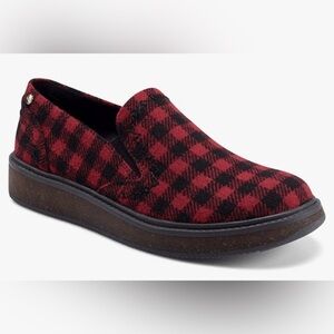 Earth Elements Abelia red buffalo plaid Slip Resistant slip on Shoe Size 10 new