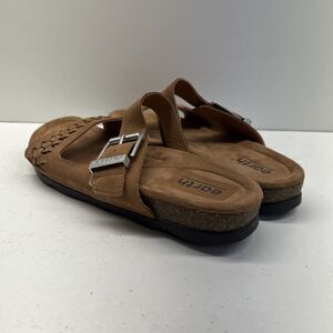 The Earth Emani Sandals in women's size 12m are stylish and comfortable strappy sandals perfect for everyday wear. Made with high-quality leather, these brown sandals from Earth feature a unique design that combines both fashion and functionality. The Earth Emani model is known for its durability and support, making them a great choice for women looking for a versatile and long-lasting sandal option.