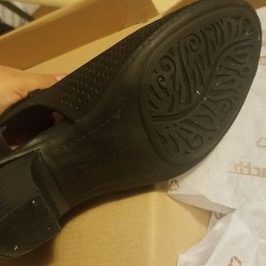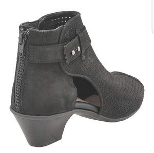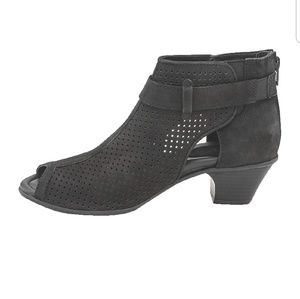 Intrepid black soft buck booties. Peep toe, side cutouts, and back zipper. 2 inch heel worn once. Box included.