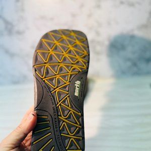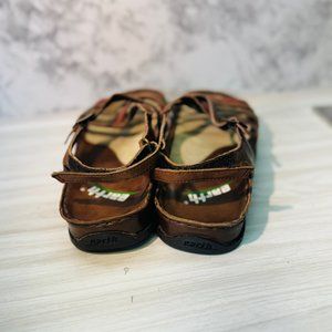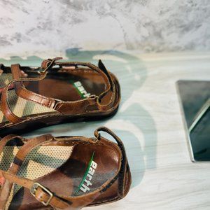 Step into comfort and style with the Earth Kalso Womens Oasis Open Toe Sandals, impeccably designed for the discerning woman. These size 6B sandals feature a classic slingback style merged with a strappy silhouette that adds a touch of elegance to your casual wardrobe. Crafted from premium leather, the straps exhibit a warm brown hue complemented by subtle multicolored accents, offering a versatile look that pairs seamlessly with a variety of outfits. The open-toe design ensures your feet stay cool and comfortable on warm days, while the adjustable slingback strap with a buckle closure provides a secure and customizable fit. The iconic Earth Kalso negative heel design promotes a natural walking motion, and the cushioned footbed supports your feet with every step. The durable outsole offers reliable traction, making these sandals perfect for all your adventures.