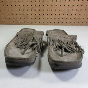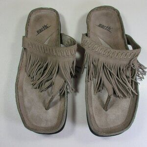 Earth Kalso womens tan suede Nature Fringe thong sandals 9.5 M EUC