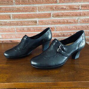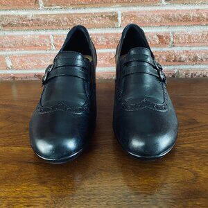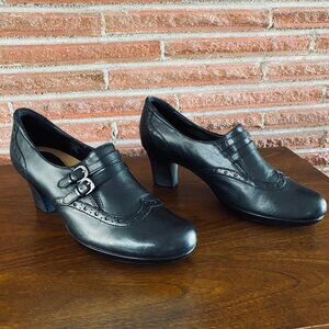 Earth Latitude leather double buckle heeled shoes women's size 10