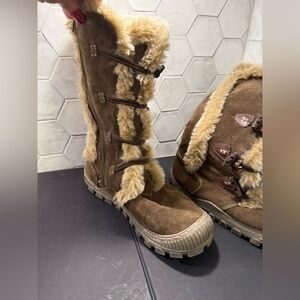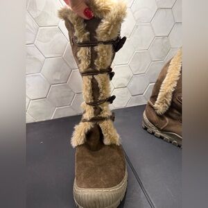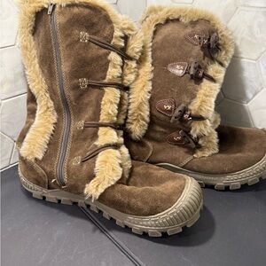 Earth Lodge 2 Caribou Suede Leather Faux Fur Toggle Boots Size 8.5 Kalso Tech
