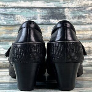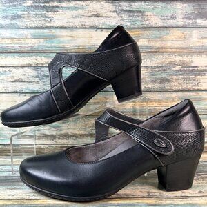 Earth Mary Jane Pumps Womens Sz 8.5W Black Leather Dress Heels Shoes Adjustable