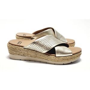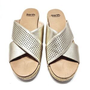 Earth Modena Marigold Sandals Women's Size 8 M Gold Perforated Leather Slides