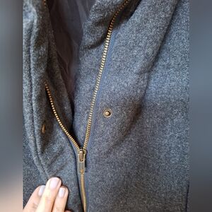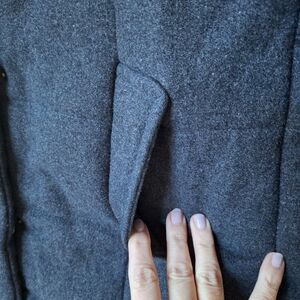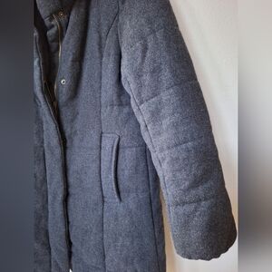 Earth Music & Ecology Winter coat. Wool Blend. Lined. Full Zip and snap closure. Front pockets. Mid length. Thick and warm. Gray. Womens size S Pit to pit flat lay 19" length from collar to hem 35" measurements are approximate