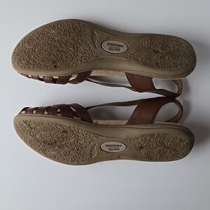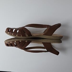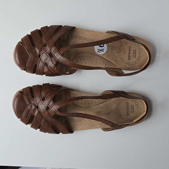 Earth Origins brown leather sandals. Closed round toe. 3/4" heel