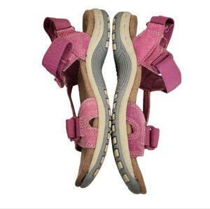 Step into comfort and style with the Earth Origins Barkley Suede Sandals in vibrant red.