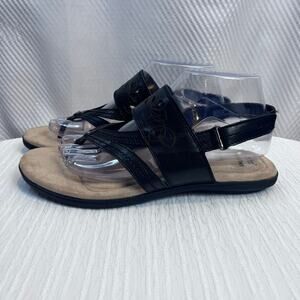 Earth Origins Belle Becky Womens Black Leather Strap Slingback Sandals Shoes 9M (L476)