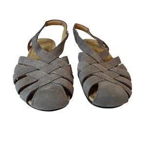 Earth Origins Berri Woven Sling Back Sandals Taupe Brown Leather Size US 9M