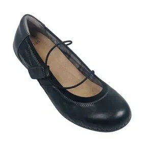 Earth Origins Black Leather Strap Flats Sz 10