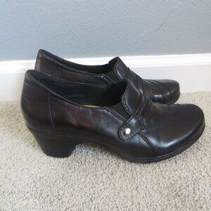 Earth Origins By Earth Rochester Womens Heels Size 6M Black Leather Slip-On Comfortable.