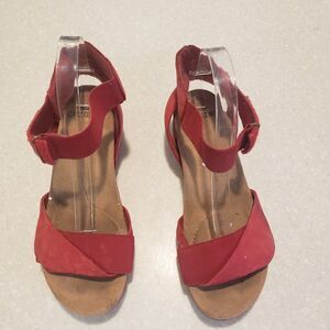 Earth Origins Cadence Carolina Sandal Womens 6.5 Leather Ankle Wrap Boho Red